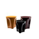 Top: Lacquered MDF or marble. Base: Cylindrical powder-coated steel. Available as side table and occasional table in multiple heights. Origin: Italy.