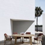 The name Ginestra (broom plant) evokes the organic beauty that inspires its design. Built to withstand outdoor conditions while maintaining its refined aesthetic, this table anchors the outdoor dining experience with B&B Italia's signature style.