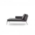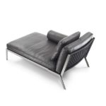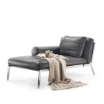 Frame: Metal. Upholstery: Fabric or leather. Padding: Polyurethane foam. Low lounge chair and footstool. Base: Metal legs. Origin: Italy.