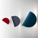 In the shape of a small curved lunar disc, IO is a wall light with dual Led light emission. IO appears almost suspended, very close to the wall but never close enough to touch it; positioned at a distance that allows the light to gently caress the wall with an intimate skimming effect. Elegant and minimalist, it is equipped with a mount with a dual rotating axis. is allows the diffuser to be rotated by 360°, directing it exactly where the light is required. In addition to rotating, the diffuser also moves up and down, opening and closing the light beams to adjust to individual requirements. Designed to provide a source of light that is as personal and adjustable as possible, the ideal use for this light is as a bedside lamp. However, it’s versatility also makes it an excellent solution for lighting the walls of offices and corridors, both in residential and contract spaces. The diffuser is made from die-cast aluminium and looks very solid despite its small size. It is available in a matt finish in the following four colours: graphite grey, red, white and blue. The inside is always white in order to reflect as much light as possible.
