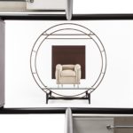 Metal tubing painted matt black. A choice of absolute austerity that is softened by the rings with polished Gold, Light Bronze or Black-Nickel finish that set off the corners of the chair, adding a note of decorative contrast to the stark formality of the structure.