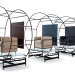 How to harmoniously blend form and function is the quest that led to the creation of a backrest with an enveloping shape and a comfortable seat, both with metal structure encased in polyurethane foam. The internal cushion has a structure in flexible thermoformed material and polyurethane foam that lends added comfort to the backrest.