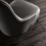 The cold-molded structural polyurethane shell provides the rigid outer form that makes the Leslie's enclosing quality possible — it must be both structurally self-supporting at 1000mm height and precisely formed to wrap the sitter effectively. The dual-material leather/fabric upholstery options — which allow different materials to be used on the interior and exterior surfaces of the chair — acknowledge the Leslie's bi-material character and enable sophisticated two-tone compositions that read differently from inside and outside the chair.