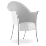 Lord Yo by Philippe Starck for Driade (1994) is one of the designer’s most commercially successful chairs — the polypropylene shell reinforced with fibreglass creates a stackable chair that is simultaneously affordable, durable, and unmistakably Starck in its formal language.