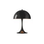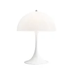 The Panthella was designed by Verner Panton in 1971 as one of the most complete expressions of his design philosophy — organic form, singular material, total visual unity. The original floor lamp presented a mushroom silhouette of almost comic exuberance: a large acrylic globe on a curved stem, the two forms merging seamlessly without joints or seams. The Panthella 250 is the table version of that original, scaled to a more intimate format that retains every proportional quality of the floor lamp in a bedside or desktop context.