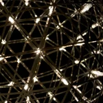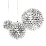Raimond by Raimond Puts is a perfect sphere of mathematical beauty — a tensegrity structure of stainless steel rods, each intersection holding a tiny LED, producing a constellation of warm light. Named for its designer, it is one of the most structurally pure lighting objects in contemporary design.
