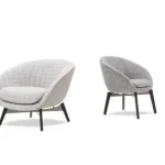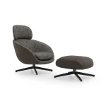 The Russell Armchair's relationship to the club chair tradition is formal rather than nostalgic. Dordoni takes the basic proportions and enclosing qualities of the classic club form — the generous seat depth, the substantial back and arm height, the sense of protective enclosure — and subjects them to the geometric discipline and material precision of contemporary Italian design. The result is a chair that reads as current without being aggressively modern, and that carries the comfort associations of the club chair tradition without its period-specific formal weight.