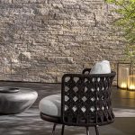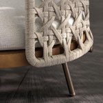 The hand-woven detailing is among the most labor-intensive production operations in the Minotti collection. Each backrest requires individual assembly by skilled craftspeople who must maintain consistent tension and pattern across the entire woven surface — a process that cannot be mechanized without losing the subtle irregularities that give hand-woven objects their visual warmth. The metal base in Bronze finish connects the Torii Nest to the broader Torii family's material language while supporting the woven backrest with the structural precision its formal delicacy requires.