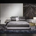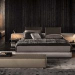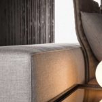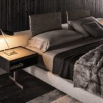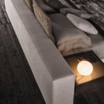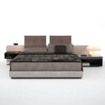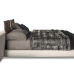 The headboard features generous, soft padding and reflects the distinguishing motif of the “Offset” elements, and projects out on both sides to form a single, unified profile designed to also accommodate the Close bedside tables. The headrest is an elegant and functional accessory that can be added to the headboard for optimum reading support and comfort. The base of the bed includes the modern cm 17 -high base with pocket springs that, along with the “Comfort H25” mattress, promises an extremely restful night’s sleep. The bed rests on simple, but elegant Pewter color metal blades.